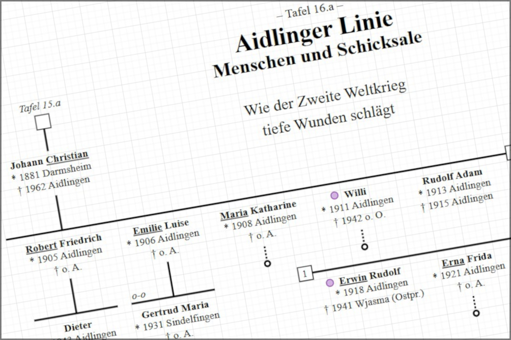 Nachdem ich jetzt Version 7 meiner Stammlinien-Grafik vorliegen habe, muss ich meine Familienchronik doch nochmals anpassen und um einen weiteren, neuen Familienzweig erweitern. Wobei es diesmal eher ein Auslagern eines schon bestehenden Astes aus der Darmsheimer Linie ist und wir den Ast als eigenständige Linie führen können. Somit ist die Überarbeitung doch recht schnell gemacht und ich kann den größten Teil einfach nur so übernehmen und entsprechend erweitern mit den neuen Daten und Erkenntnisse. Und meine Stammtafel ist wiederum um acht Personen angewachsen.