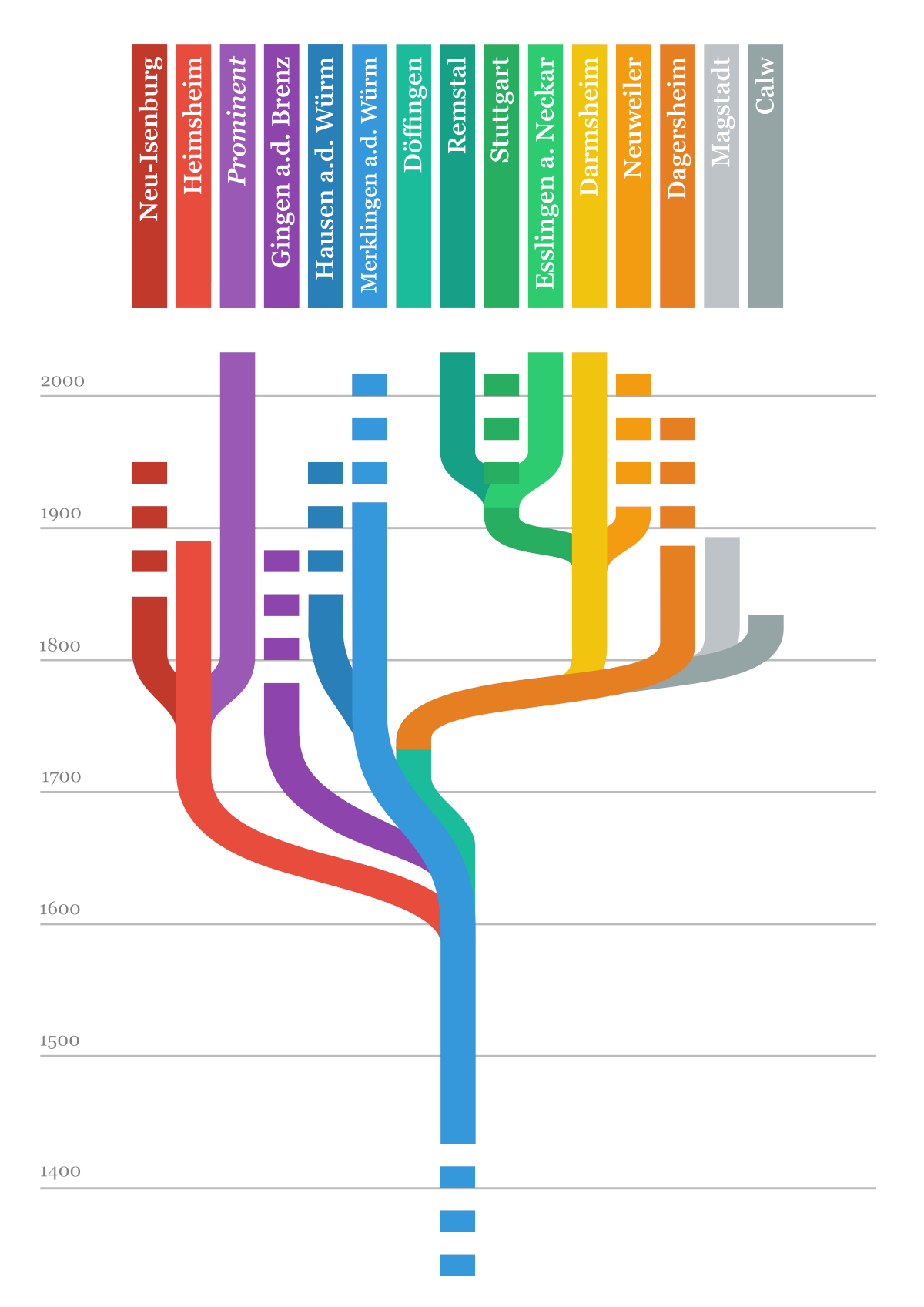 Im Zuge meiner Familienchronik habe ich mir einmal alle derzeit von mir erforschten Stammlinien meiner GEIGER grafisch dargestellt und aufgelistet. Natürlich kann dies nur eine Momentaufnahme sein und die Darstellung kann sich zukünftig auch mal wieder ändern oder muss korrigiert werden.