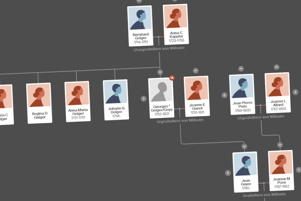 Nein, natürlich nicht. Eine ausgiebige Suche nach den genannten Geiger/Geyer bei Ancestry.de zeigte mir ein paar Familienstammbäume auf, wo ich die Verbindung zu meinen Geiger schlussendlich finden konnte. Ausgangspunkt war aber die Webseite zu »The Genealogy of Robert and Christina Barritt«, wo ich den wichtigen Hinweis zu einem Georg Geyer gefunden hatte. Von hier aus startete ich die Suche dann in Ancestry.de.