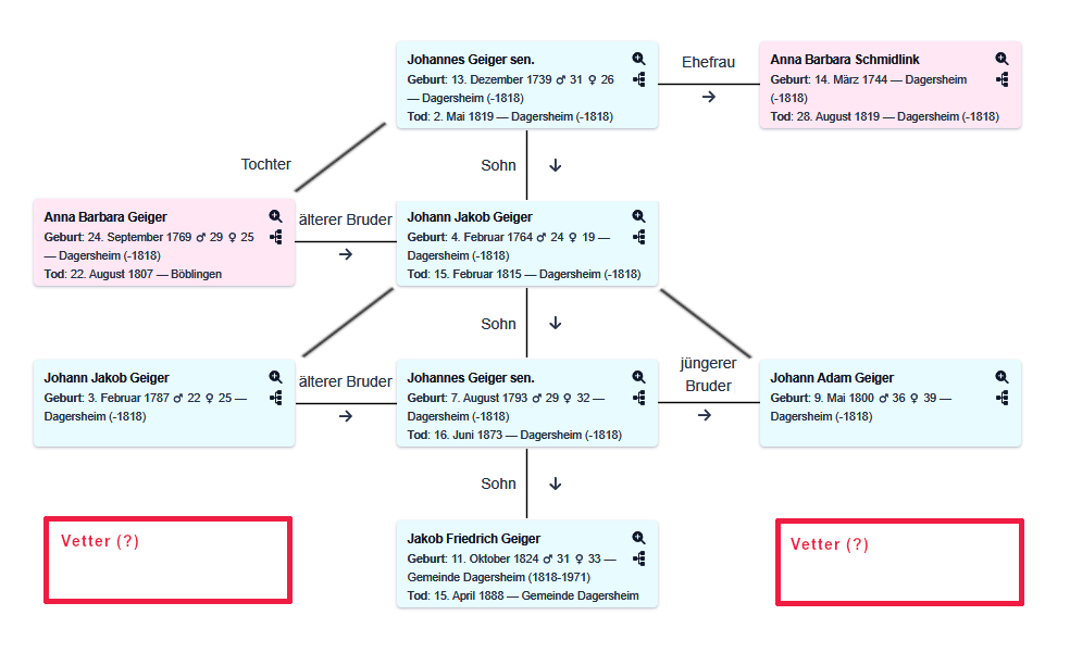 | I2455 Anna Barbara Geiger (1769-1807) | I2540 Jakob Friedrich Geiger (1824-1888) | Großneffe |