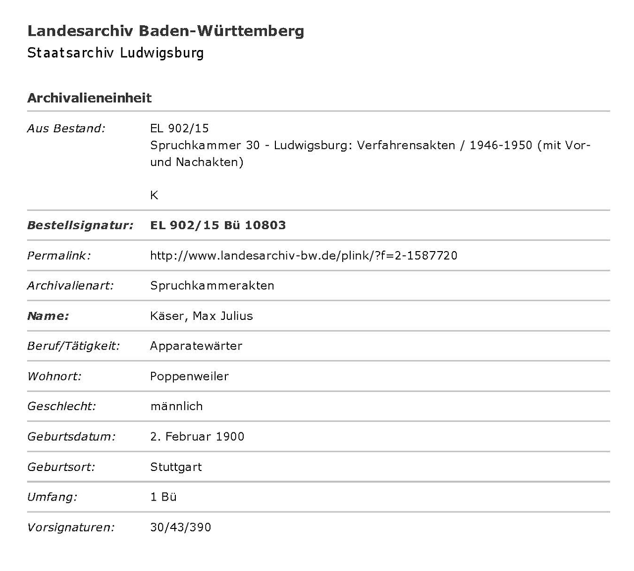 Hier zwei Einträge aus der Suche im Landesarchiv Baden-Württemberg: